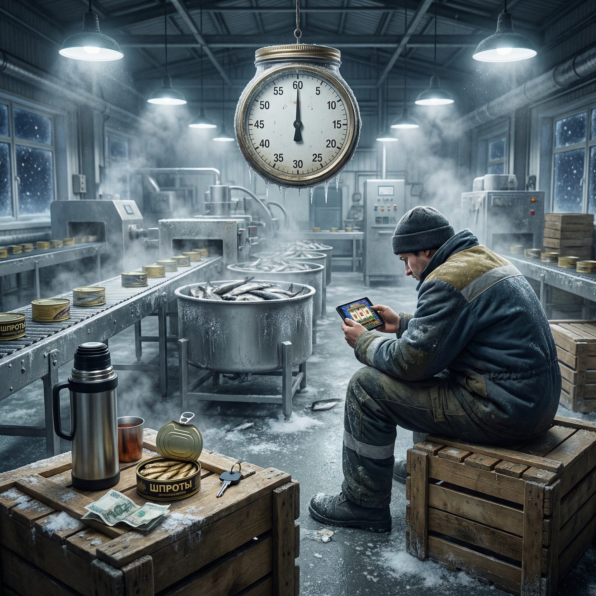 Я — Сергей, мне тридцать один год, и я оператор на старом консервном заводе в промзоне, где конвейеры гудят, банки звенят, воздух тяжёлый от пара, рыбы и специй, лампы дневного света жужжат. Сейчас глубокая ночь зимы, смена кончилась, пар стелется по цеху, рыба в чанах остывает. Я сижу в комнате отдыха среди пустых ящиков, открываю телефон и захожу на официальный сайт Вулкан 24 — мой горячий соус к ночным ставкам.